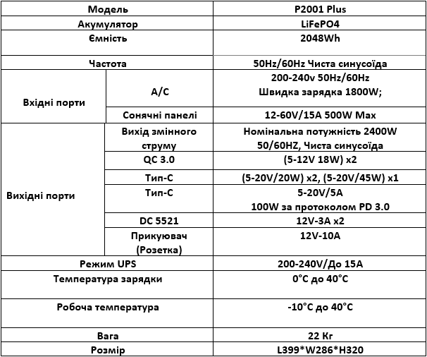 - У компактному корпусі знайшлося місце для інвертора потужністю 2,4 кВт, що достатньо для більшості домашніх приладів. Тимчасовий стрибок потужності до 4,2 кВт дозволяє запускати пристрої з високим пусковим струмом, такі як пральні машини чи глибинні насоси. Ємності 2048 Вт вистачить на 1-2 дні при економному споживанні енергії, а швидка зарядка потужністю 1,8 кВт дозволяє зарядити станцію до 80% всього за 1 годину. В такому режимі, це один з найкращих варіантів для постійних відключень електроенергії.